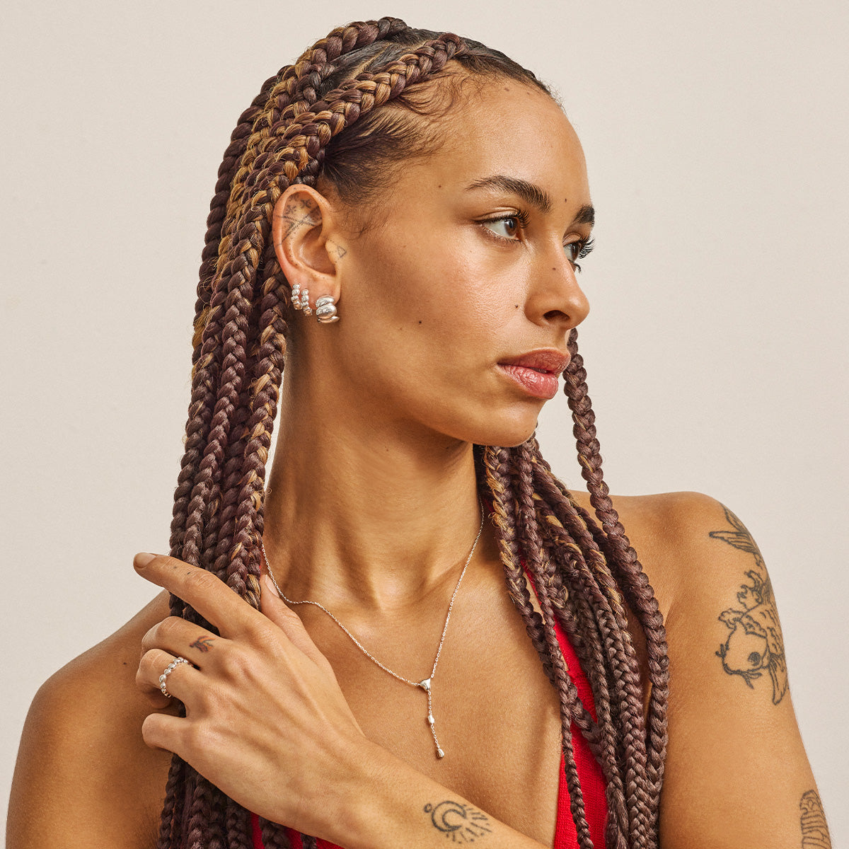 For oss handler godt design ikke bare om estetikk, men også om ansvar. Derfor jobber vi målrettet med holdbare materialer og produksjoner som sikrer at smykkene dine kan følge deg i mange år og bli en fast del av ditt personlige uttrykk. Når du investerer i et smykke fra SS26, velger du noe som er skapt for å bli elsket – igjen og igjen.