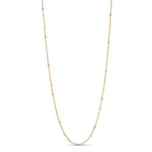 Introduser leken sjarm med Lola-armbåndet i Tropical. Dette armbåndet presenterer lyse og friske nyanser av rosa, som minner om en tropisk paradis. Det delikate kjededesignet gjør det enkelt å kombinere med andre armbånd. Lola-armbåndet er tilgjengelig i ulike farger og er laget i både ekte sølv og 18K gullbelagt. De fargede emaljekulene bringer livlighet til håndleddet.