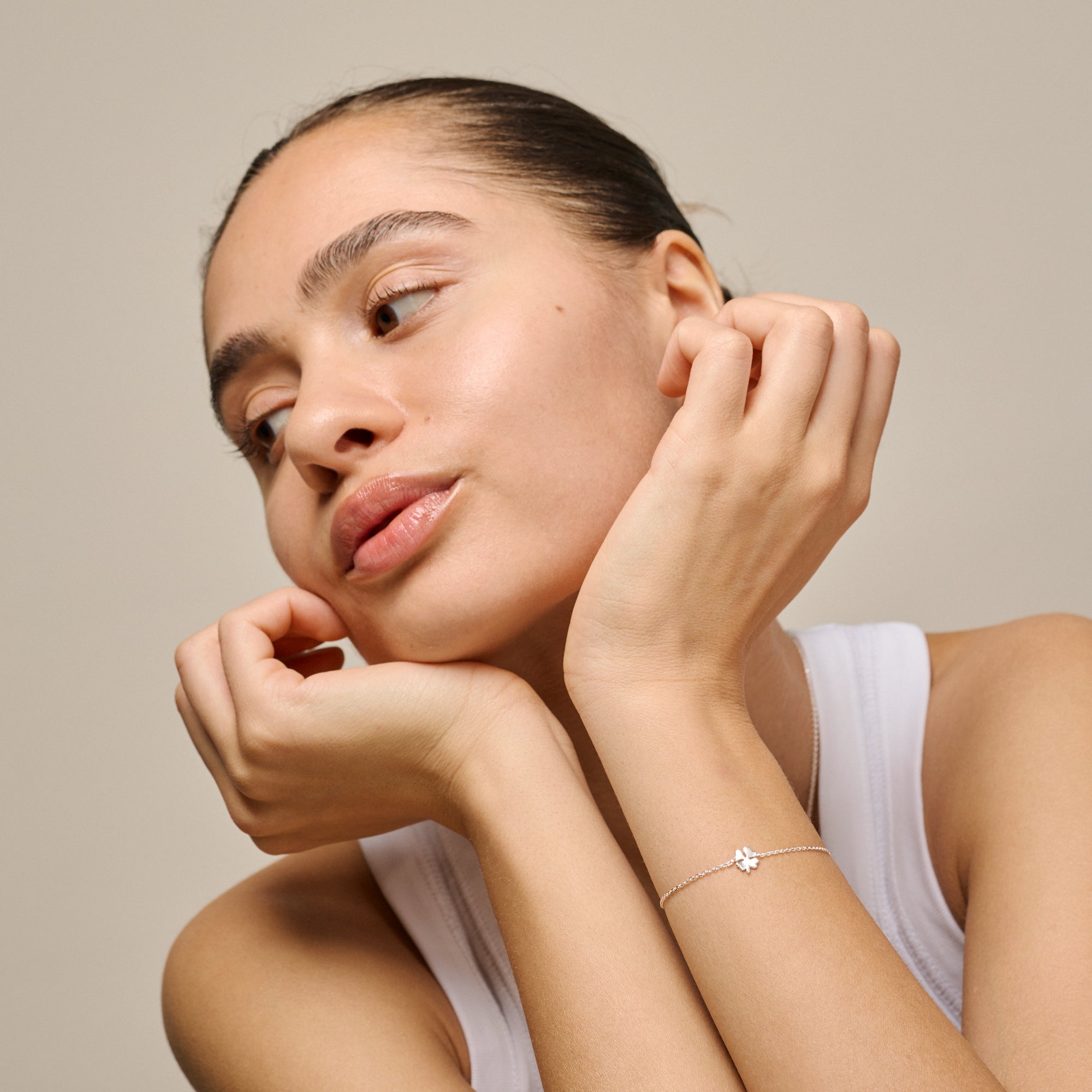 Om smykket: Vakkert, håndlaget kløverarmbånd med smakfulle detaljer. Firkløveren er et gammelt symbol på lykke, og bringer hell til den som bærer den. Vårt kløverarmbånd er for deg som setter pris på detaljer, unikt håndverk og meningsfylt smykke. Kløverserien er også tilgjengelig som øredobber og halskjede.
