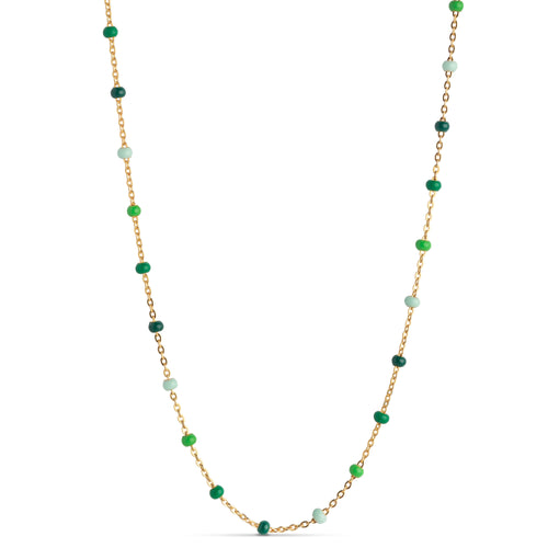 Opplev vårens livlige farger med Lola-armbåndet i Spring. Dette unike smykket fremhever en blå og flere grønne nyanser, som minner om blomstrende blomster og friske blader. Det fine kjedearmbåndet er perfekt for en lag-på-lag-effekt og kan kombineres med andre armbånd for å skape din personlige stil. Lola-armbåndet er laget i sterlingsølv og belagt med 18K gull. De fargede emaljekulene er håndmalt og tilfører farge til håndleddet.