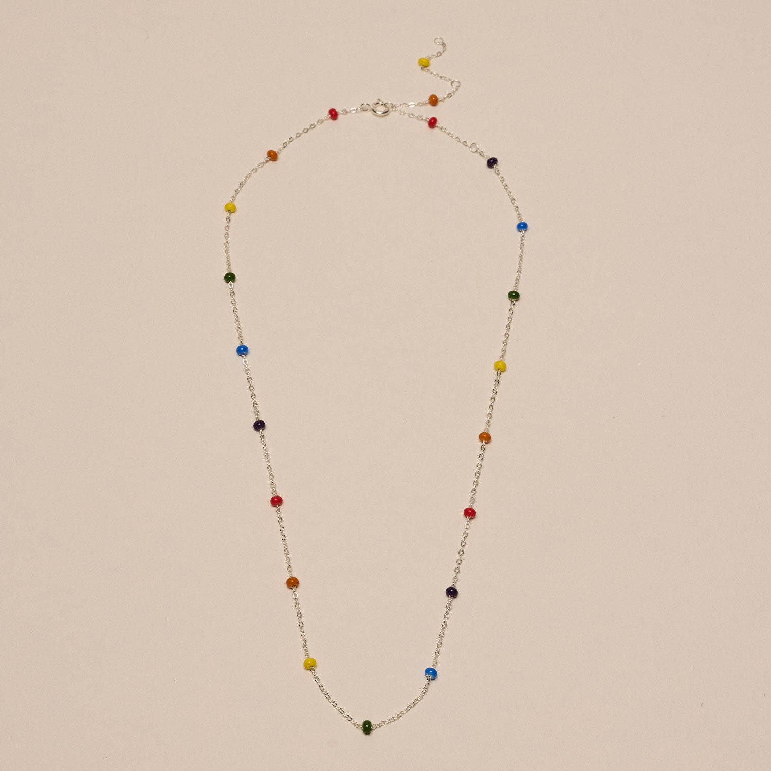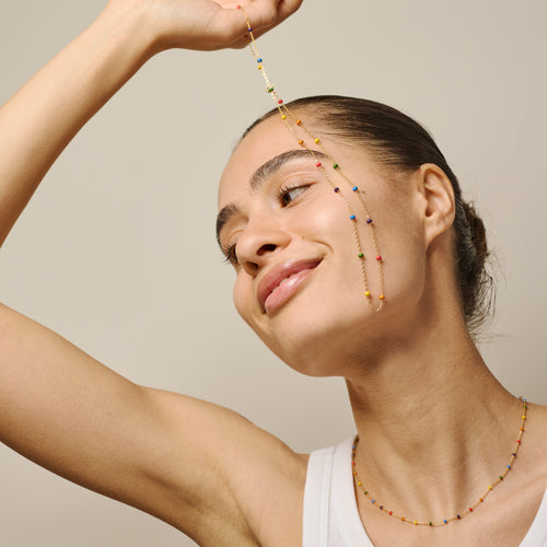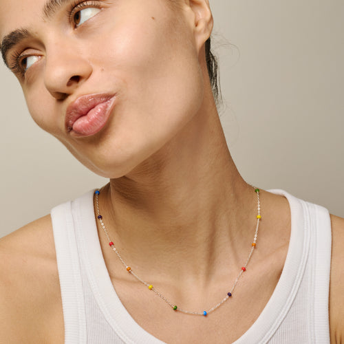 I den anledning har vi skapt Lola Bold Diversity - en spesiell utgave av vår populære Bold-halskjede, designet i regnbuefarger som et symbol på fellesskap og aksept. De håndmalte emaljekulene danner en fargerik og kraftfull regnbue som stråler av glede og personlighet.