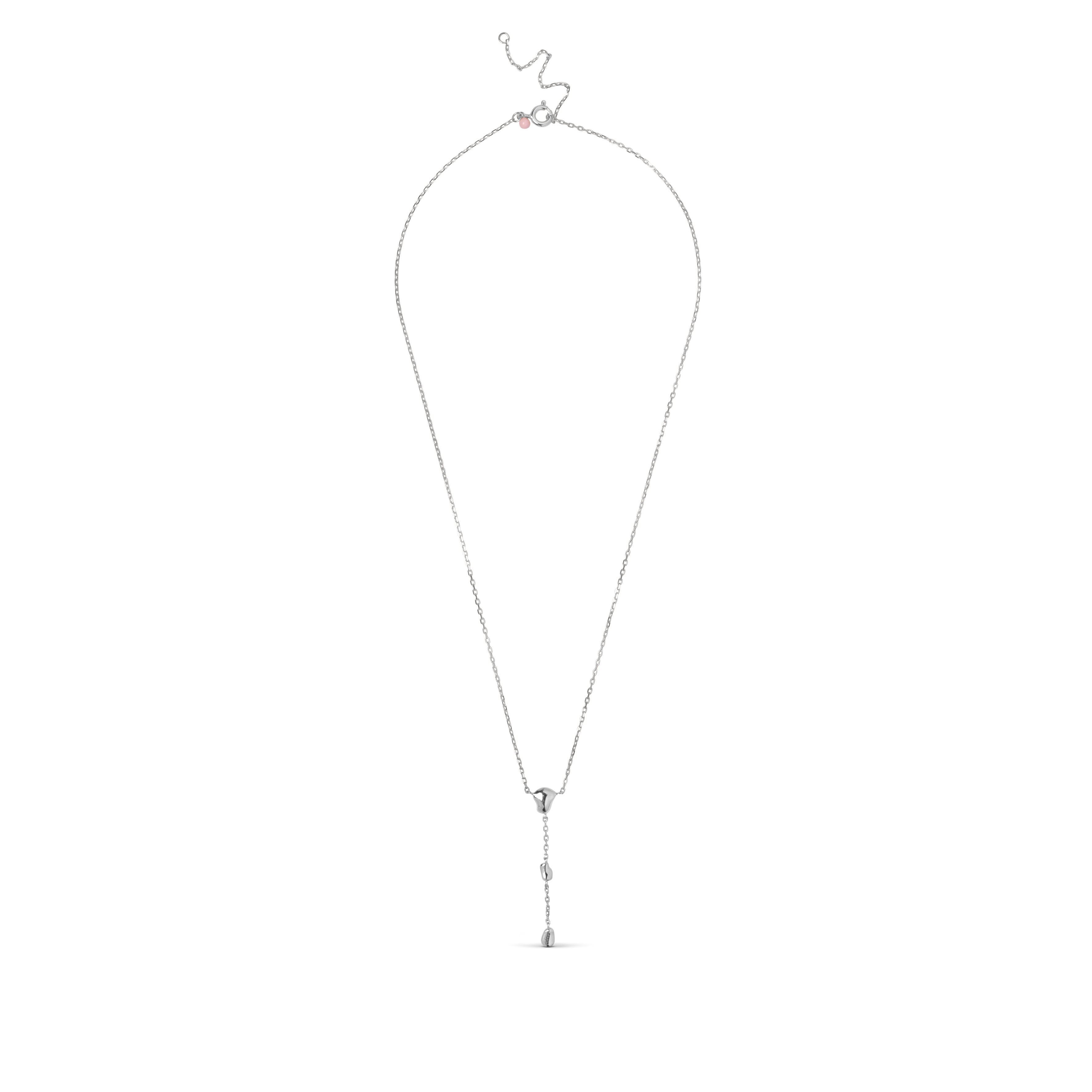 Om smykket: Talia halskjedet i sølv har et organisk og elegant uttrykk da de myke sølv elementene leker vakkert sammen med den fine kjeden. Designet er en klassisk Y-halskjede som faller lett og flatterende på halsen. De polerte formene skaper et luksuriøst og tidløst utseende. Talia finnes også i gull.