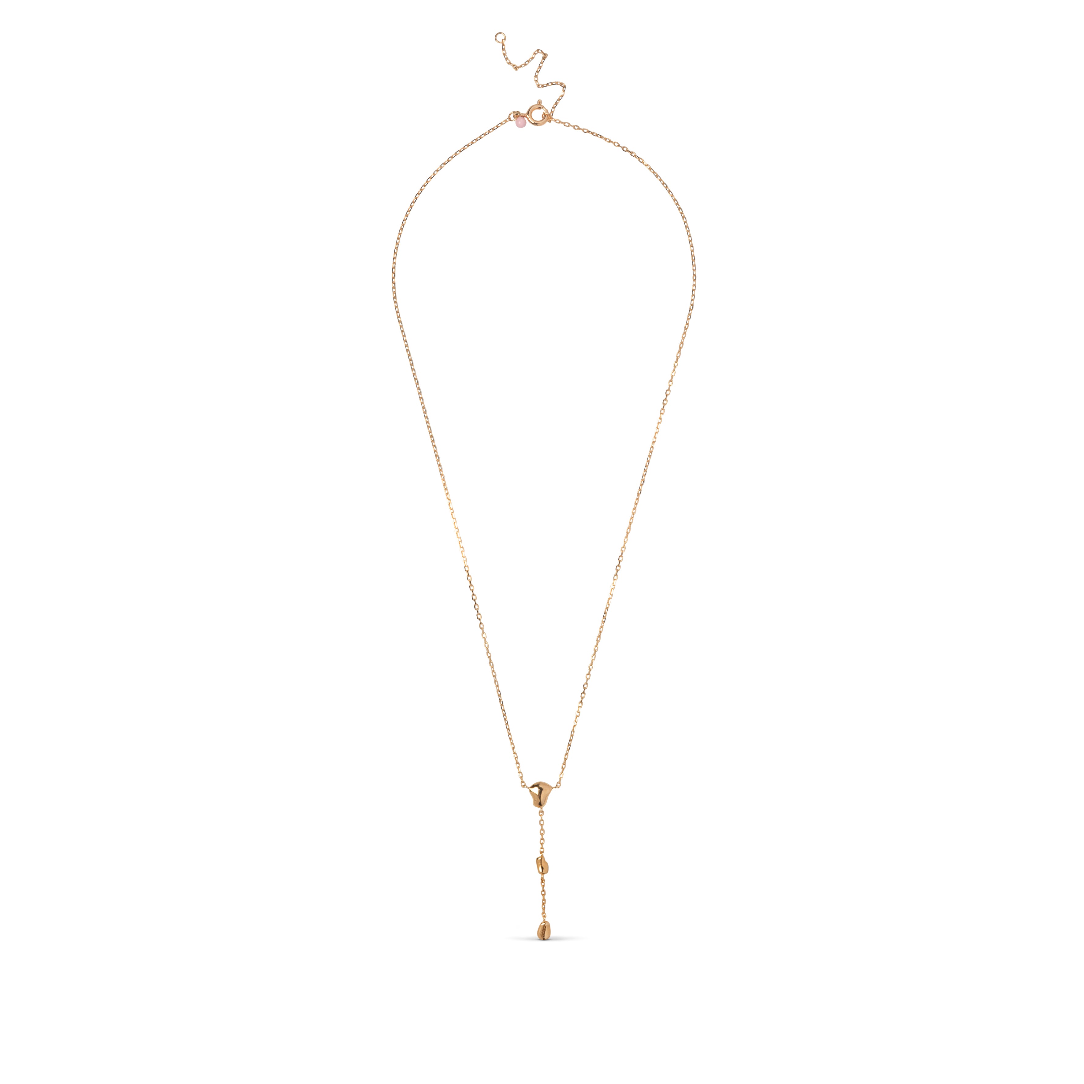 Om smykket: Talia-halskjedet belagt med 18 karat gull har et organisk og elegant uttrykk, da de myke gullelementene leker vakkert sammen med den fine kjeden. Designet er en klassisk Y-halskjede som faller lett og smigrende på halsen. De polerte gullformene skaper et luksuriøst og tidløst utseende. Talia finnes også i sølv.