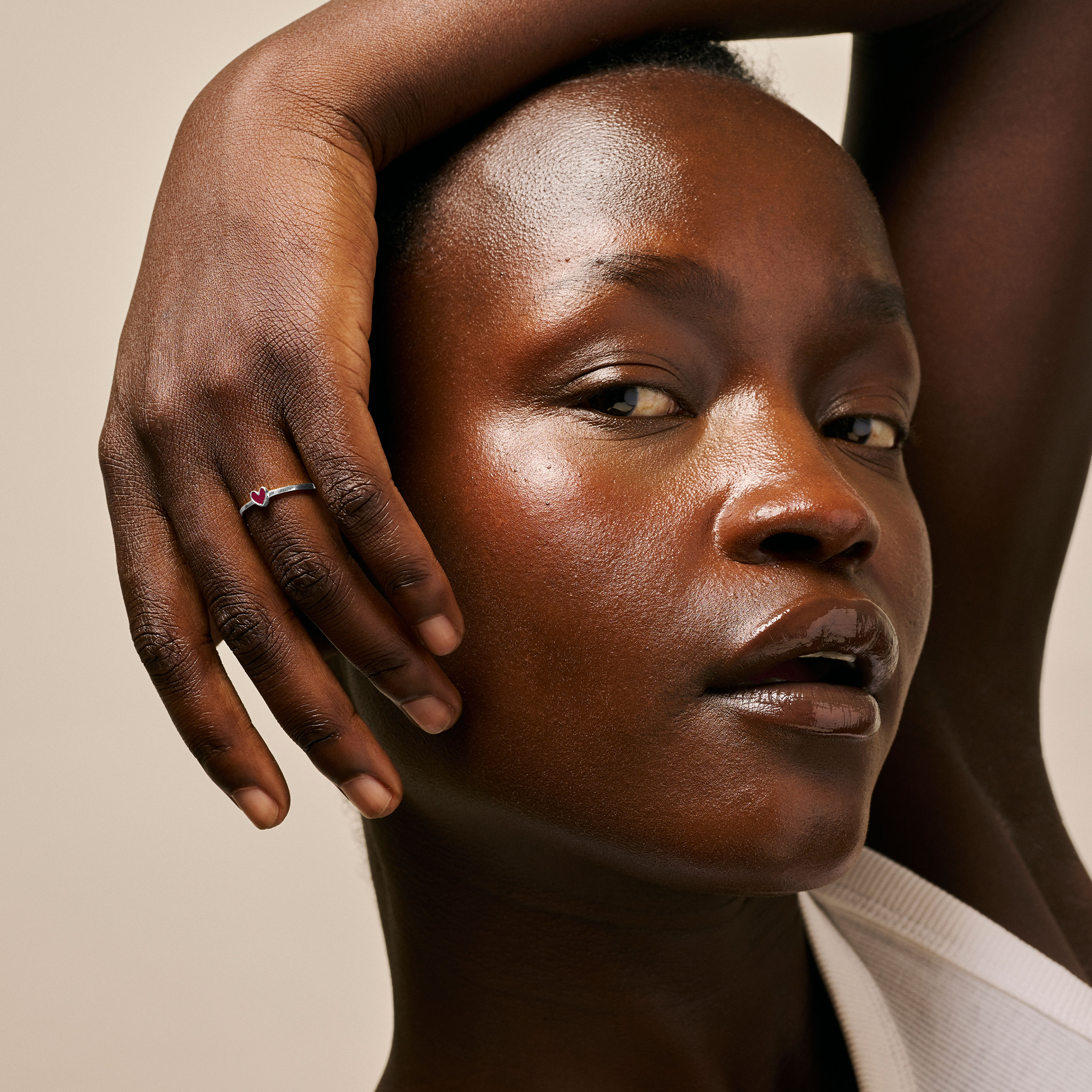 Om smykker: Amore-ringet er en søt, diskret påminnelse om det viktigste, største, og det vi sannsynligvis alle snakker mest om, kjærlighet. Ringen kan gis som gave til noen du bryr deg om, og er ideell for å stables med andre meningsfulle ringer. Ringen er justerbar, med en spennvidde på fire størrelser, noe som gjør det enkelt å tilpasse til fingrene dine. Amore-ringet i sølv er mer dempet og stilig i uttrykket sitt, og det kule utseendet passer godt med alle klesfarger og hudtoner. Den varme bordeaux-fargen er et godt alternativ til vår andre klassiske røde farge. Den kompletterer huden og sølvfargen perfekt og legger til en subtil og sofistikert vri.