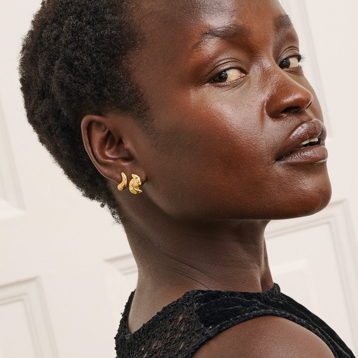 Om smykket:Nima Stud er en liten, elegant øredobb med en myk, organisk form og en lett bølget overflate. Den blanke finishen gir den et eksklusivt preg, og det kompakte designet gjør den ideell for både hverdagsbruk og mer sofistikerte antrekk. Bruk den alene for et minimalistisk uttrykk – eller kombiner med flere stiler for en personlig stil. Nima-stud er belagt med 18 karat gull, men finnes også i en sølvversjon.